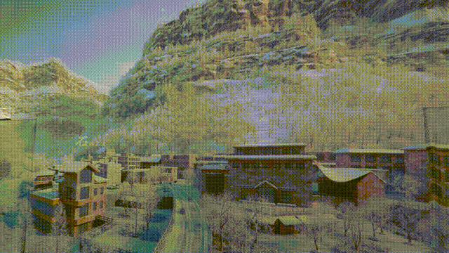而只需一个转身,展厅便悄然过渡至冬日的静谧,白雪覆盖山峦,雾凇凝结时光,与父母一起从秋走入冬,就像他们曾牵着你,走过一年又一年。