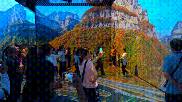 展厅内“秋韵太行”正以光影为笔,描绘太行醉美秋色。与父母并肩驻足,仿佛同游太行秋林。他们眼中的笑意,也如这秋光般,温煦动人。